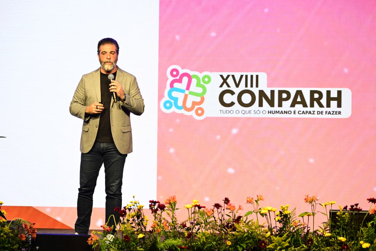 Rogério Chér, consultor, escritor e conferencista, provocou uma profunda reflexão no público do XVIII CONPARH, em palestra realizada no Auditório Alelo. Ele convidou os congressistas a pensar sobre como a cultura viva transforma valores em atitudes no dia a dia. “Nesta longa trajetória, tenho uma certeza: estar desempregado é tão ruim quanto estar desengajado”, afirmou.