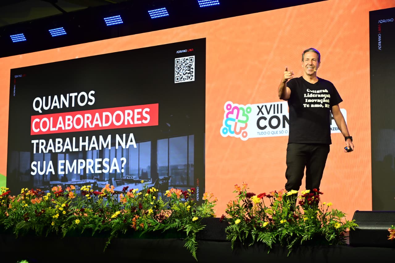 Adriano Lima, referência nacional em gestão de pessoas e eleito Top of Mind de RH de 2025, proferiu a palestra “Inspirar ou pirar: o dilema da liderança” no Auditório Alelo, durante o XVIII CONPARH. Ele iniciou a apresentação declarando seu amor pelo RH e compartilhou o que classificou como “a vergonha da minha carreira”, vivida durante seu período como vice-presidente de RH da Mastercard.