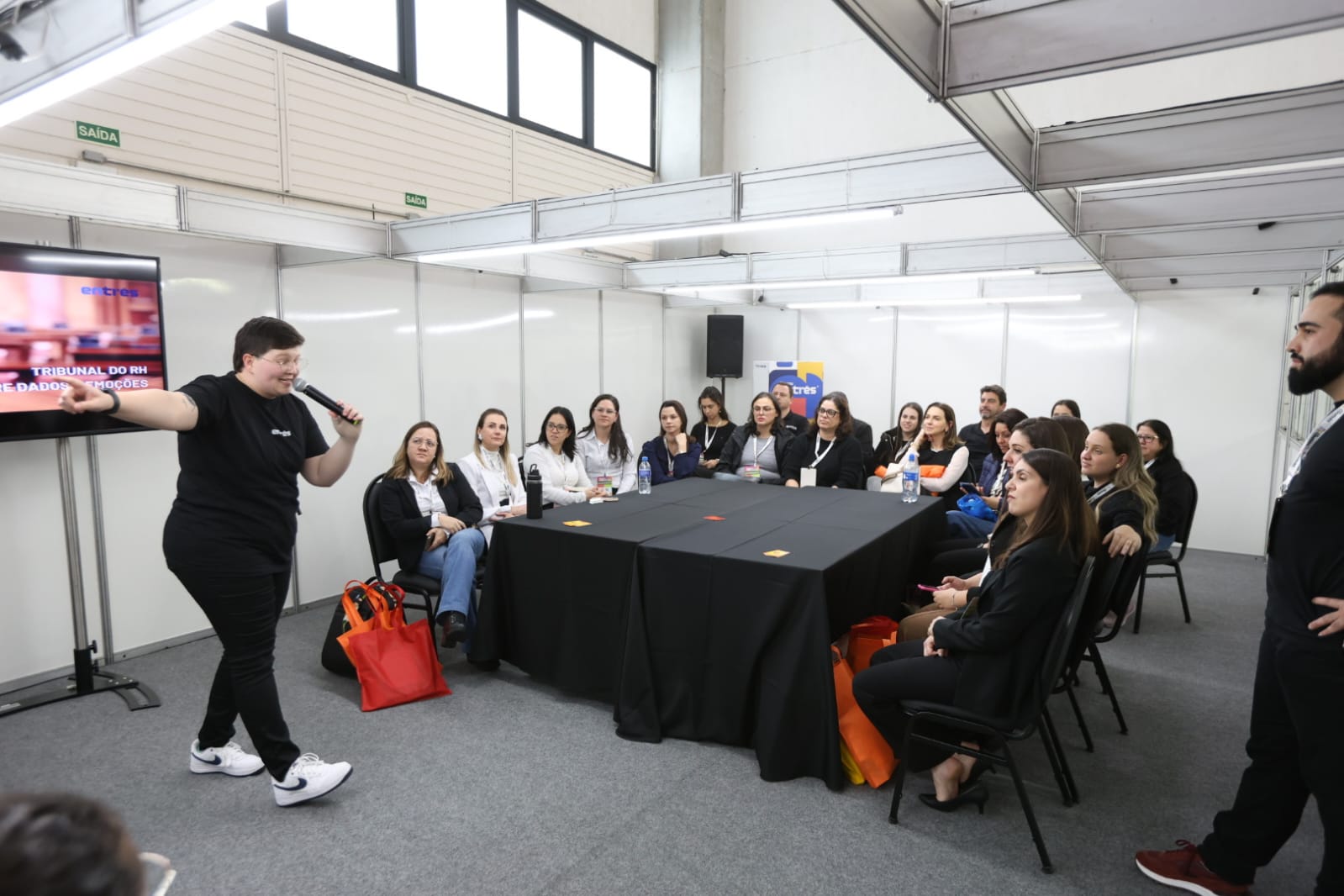A Sala Imersiva no XVIII CONPARH é um espaço especialmente criado para envolver os sentidos do participante e proporcionar experiências verdadeiramente transformadoras. Projetada para eliminar distrações externas, ela conduz o público a novos cenários – reais ou simulados – por meio de estímulos visuais, sonoros e sensoriais.