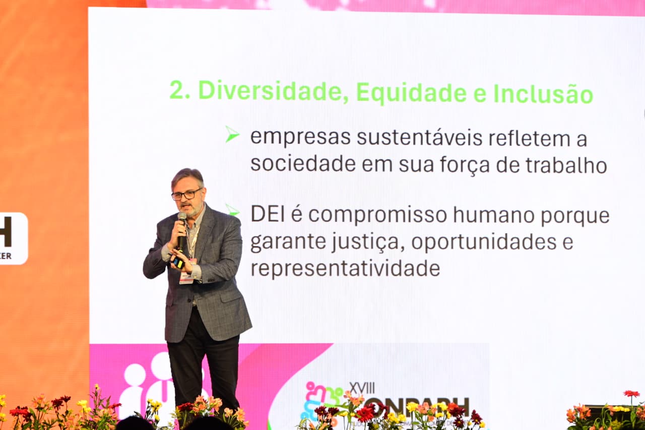 A afirmação é do especialista Sandro Benelli, durante palestra no XVIII CONPARH, apresentada no Auditório Aleo. De acordo com ele, a chave para o sucesso é a integração. “A sustentabilidade deixou de ser apenas um diferencial competitivo para se tornar um verdadeiro compromisso humano e cultural dentro das organizações. Essa transformação começa quando paramos de tratar o tema como um ‘projeto’ ou ‘área isolada’ e o integramos como um valor transversal que permeia toda a empresa”, declarou.